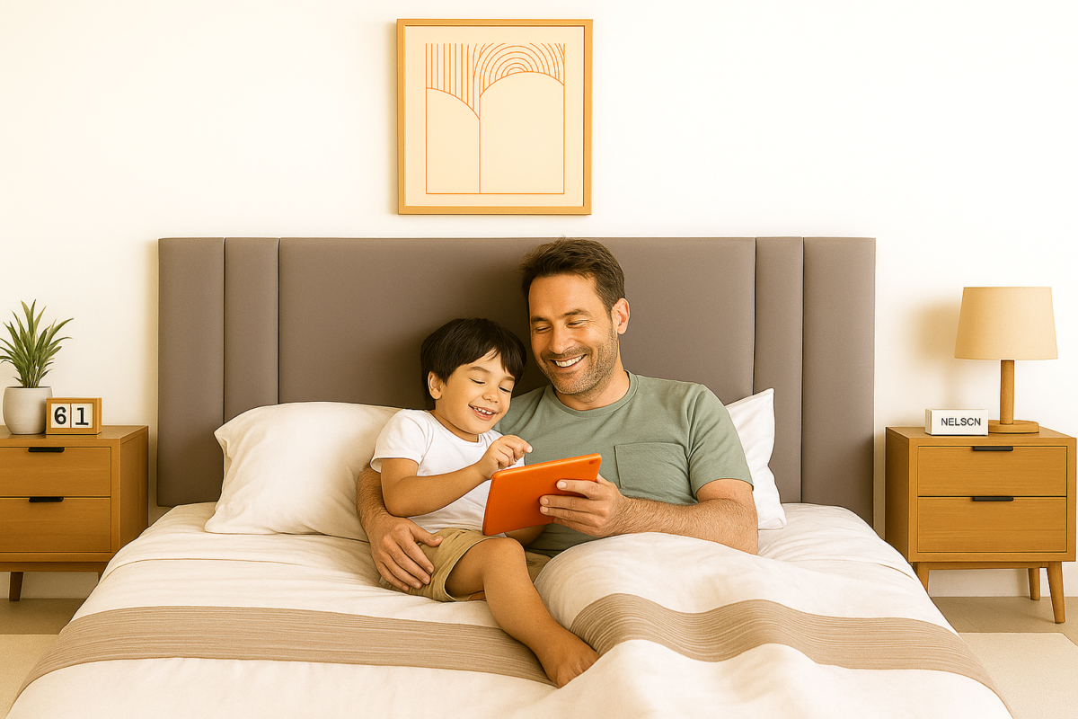 Cabecero de cama CADIZ tapizado en tejido antimanchas de alta calidad, diseñado para aportar modernidad, confort y elegancia al dormitorio. Su silueta, marcada por líneas geométricas , aporta un aire contemporáneo y acogedor que lo convierte en la pieza central de la habitación. Una elección ideal para quienes buscan un diseño actual y fácil mantenimiento.”