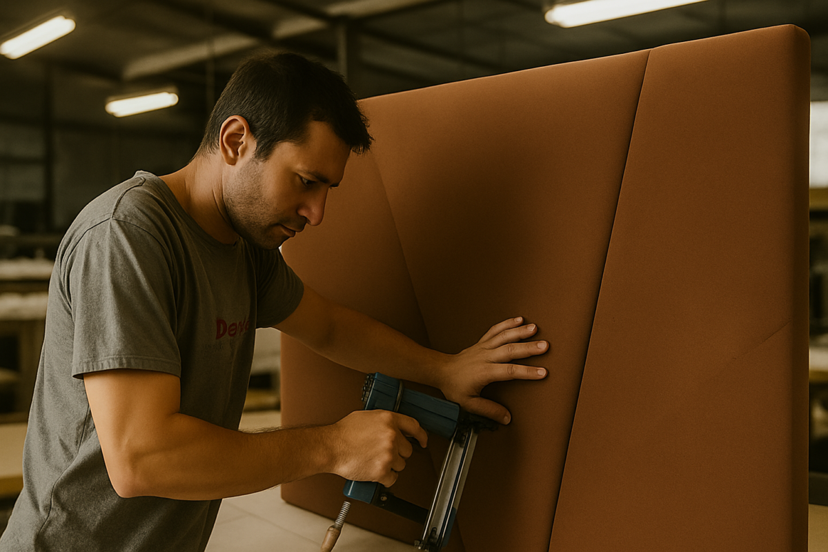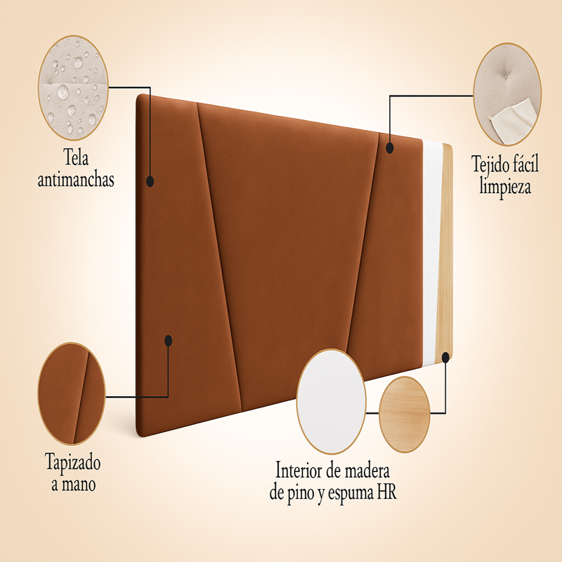 Cabecero de cama MALAGA tapizado en tejido antimanchas de alta calidad, diseñado para aportar modernidad, confort y elegancia al dormitorio. Su forma con líneas geométricas en “V” crea un estilo contemporáneo y acogedor, convirtiéndolo en el protagonista de la habitación. Ideal para quienes buscan diseño actual combinado con practicidad y fácil mantenimiento.